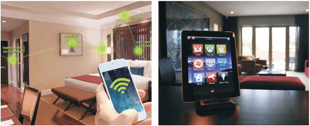 Khả năng giao tiếp với nhau của các thiết bị này có thể cho phép người dùng điều khiển nhiều thiết bị theo nhiều phương thức khác nhau, chẳng hạn như điều khiển từ xa, điều khiển qua điện thoại thông minh, máy tính bảng hoặc loa thông minh. Cho phép người vận hành khách sạn giám sát toàn diện các thiết bị trong phòng, cho phép kết nối tương tác các hệ thống như hệ thống quản trị khác sạn PMS để mang lại các tiện ích cho vận hành và trải nghiệm của khách hàng.