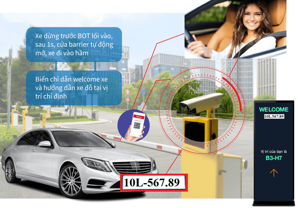 Tại điểm kiểm soát ra/vào, sử dụng các công nghệ tiên tiến để tự động xác thực xe ra vào, không cần nhân viên kiểm soát vé.