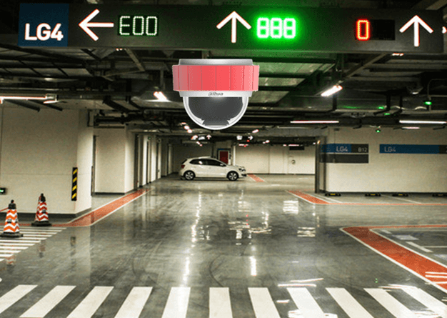 Hệ thống chỉ dẫn và quản lý vị trí đỗ xe thông minh bằng các camera AI tích hợp đèn LED. Các camera AI giám sát các vị trí để xe: